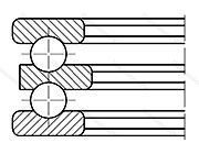 Подшипник упорный шариковый двойной 38206 в конструкцию которого входит свободная внешняя и тугая внутренняя шины (последняя жестко фиксируется на валу), сепаратор и заключенные в нем тела качения. При наличии двух рядов шарикоподшипников изделие комплектуется парой сепараторов. Может иметь подкладную обойму.